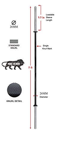 Straight barbell rod for weights/ weightlifting Made using high quality carbon steel with a load bearing capacity of 136 kg Accommodates all standard weight plates with 1 inch (26 mm) hole; 2-3 plates on either side 2 safety locks provided to lock plates on either side Chrome plating give it an extra shine